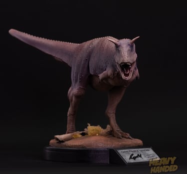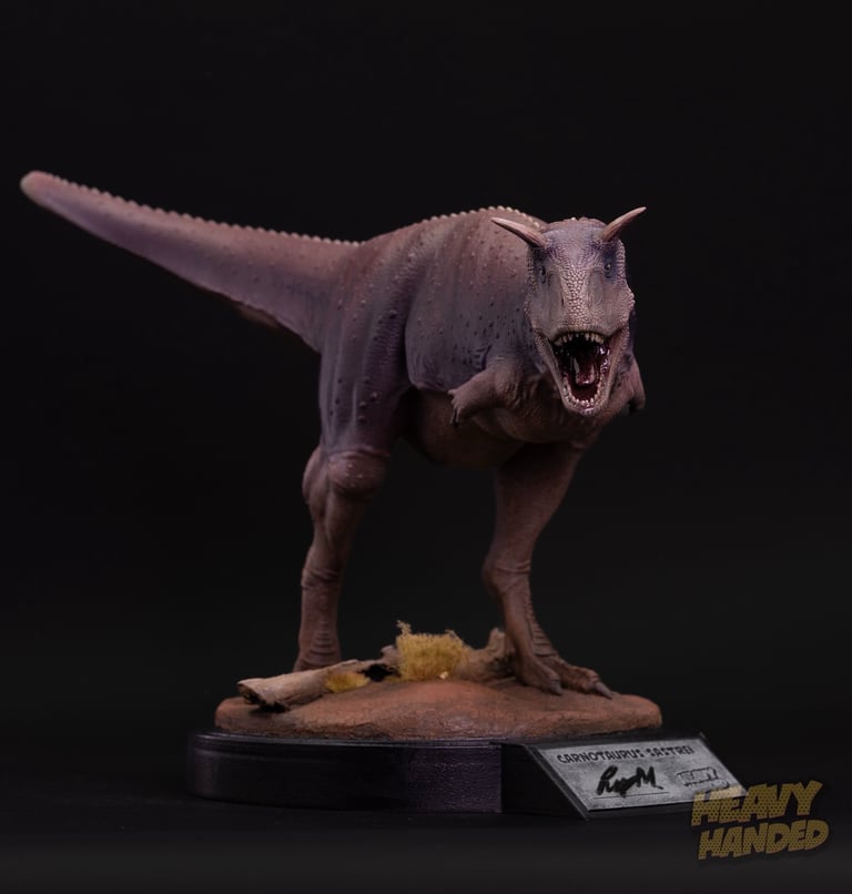 Carnotaurus sastrei, hand-painted and ready to hunt. One of one paleoart sculpture.